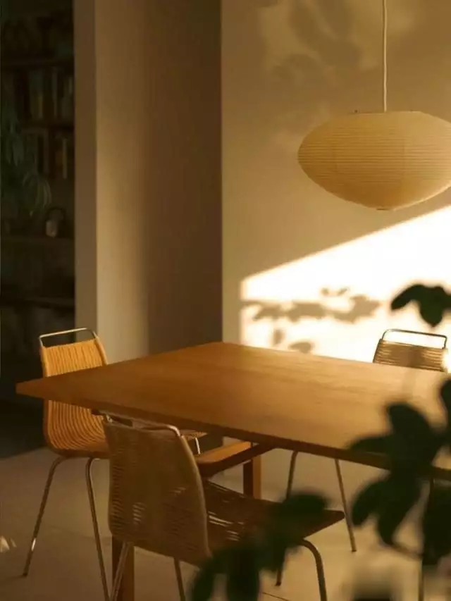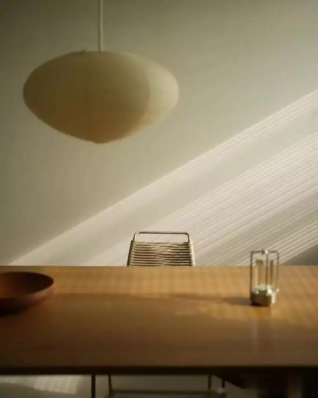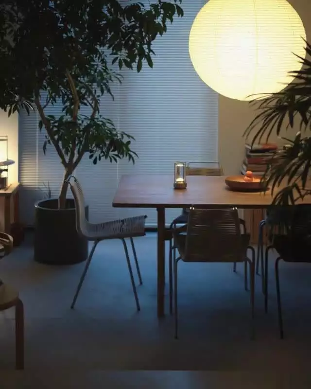 Hiroaki Kawanami的家亦是如此,客厅和餐厅都是纸质的圆形吊灯,还精心搭配不同大小的小台灯和落地灯,有的造型别致,宛如一朵含苞待放的花朵。