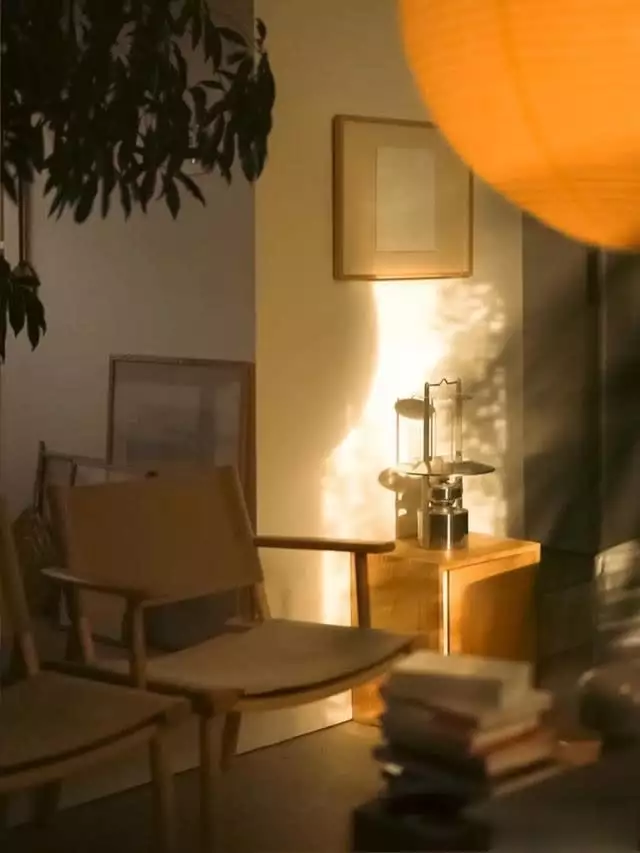 在Hiroaki Kawanami的家里,阳光将墙壁染成温暖的橘红色,家具的影子也被逐渐拉长,静静地投射在地板上,仿佛时间都放慢了脚步,透露出一种宁静与温馨的氛围。