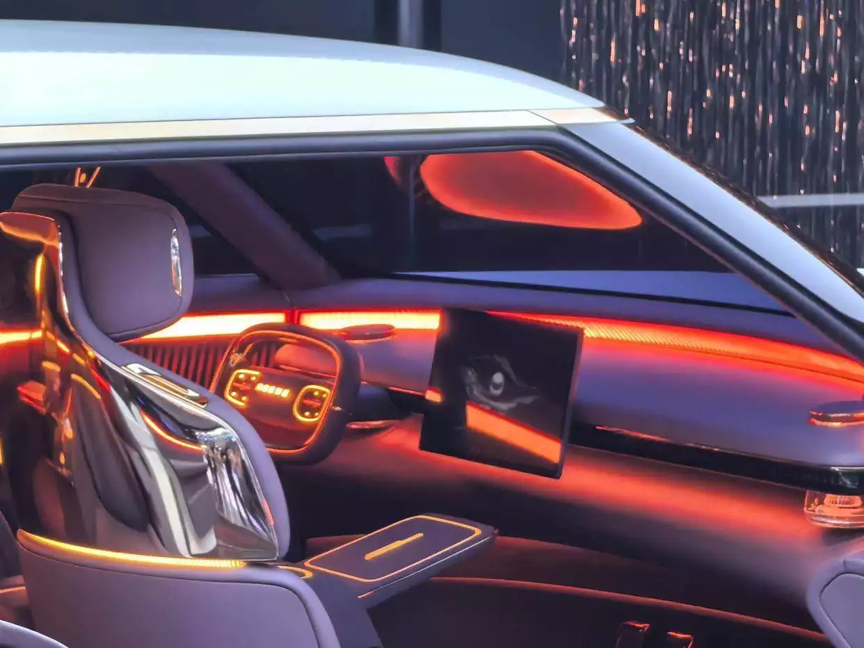 内饰部分,给人的感觉很抽象,应该还停留在概念车阶段,不过它的内饰氛围灯有点太浓墨重彩了,不但中控台上有、前排地台上有、门板内有、地板上有,而且座椅靠背上有、方向盘上有、音响上也有,给我的感觉就是有点太晃眼睛了,过犹不及。