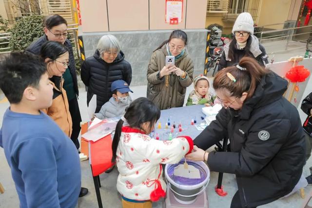另一边,蒙西社区居委会门前排起“长龙”,源头是人气爆棚的传统漆扇制作体验区。11岁的冯闵在队尾翘首以盼,笑容灿烂,兴奋地说道:“老师布置‘非遗中国年’作业,我就想做漆扇,没想到在家门口有这机会,太幸运!”8岁的季博岚同样满心喜悦,季妈妈回忆道:“去苏州时,他就盼着亲手做漆扇,下楼发现家对面有活动,孩子高兴坏了,终于能如愿。”
