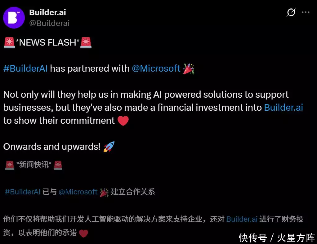曾经对这家公司寄予厚望的微软、软银、亚马逊等资方输麻了,在Builder.ai公司宣布破产并留下巨额债务后,这些此方曾经上亿美元的投资几乎全部打了水漂。